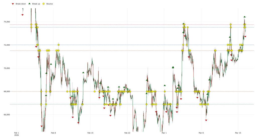 Bitcoin climbed back into the $73,500 to $73,800 resistance band over the weekend, reaching its highest level since the Iran…